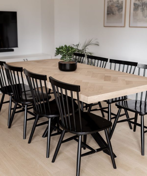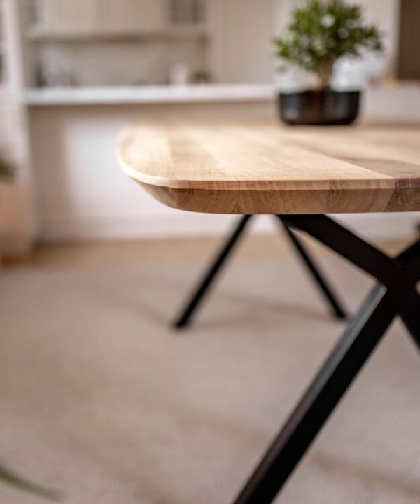 Round and oval tables have no sharp edges, making them very subtle and helping create a warm interior atmosphere. Our furniture is made from the finest material available – wood. For centuries, it has been associated with nobility, elegance, durability, and luxury. We offer tabletops made from high-quality, robust, and long-lasting parquet or solid oak, known for its beautiful grain and rich color. The surface features a herringbone pattern that adds fantastic decorative value and artistic flair. Some of them are surrounded by a metal band that serves both a decorative function and protects the edges from mechanical damage. We also adjust the length and width of the tabletop to your individual needs. Whether you have a small or large dining room, we’re confident you’ll find the right table for your space.