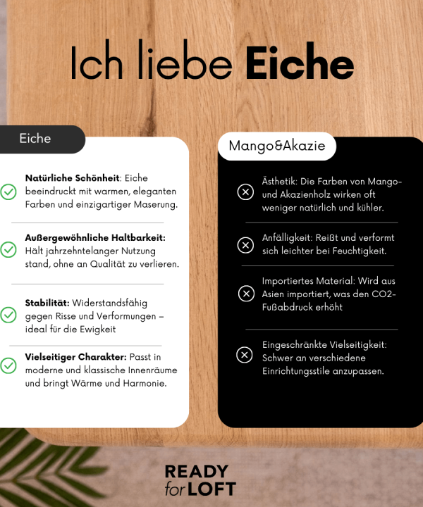 Oak table-tops are very popular due to their durability and uniqueness. Beautiful grains decorating the table-top make each table different and therefore unique. When deciding on such material, make sure that it is properly protected against scratches and deformations. This 4.5 cm thick oak table-top has been varnished with a colorless mat by default. However, it can be covered with any color from the Plantag® catalog, if so requested by the customer. Furthermore, we offer the option of finishing the sides of the table-top at an angle of 45 degrees.